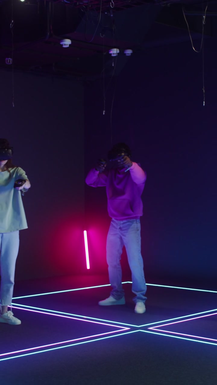 People Playing VR Games in Neon Studio